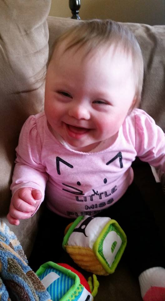 Mile 142 – Gracie. She is a little over one year old. She has 7 older brothers and sisters who love her to pieces! She loves patty cake, blowing kisses and waving hi! Mickey Mouse is her favorite! She had open heart surgery in August and is doing great now.